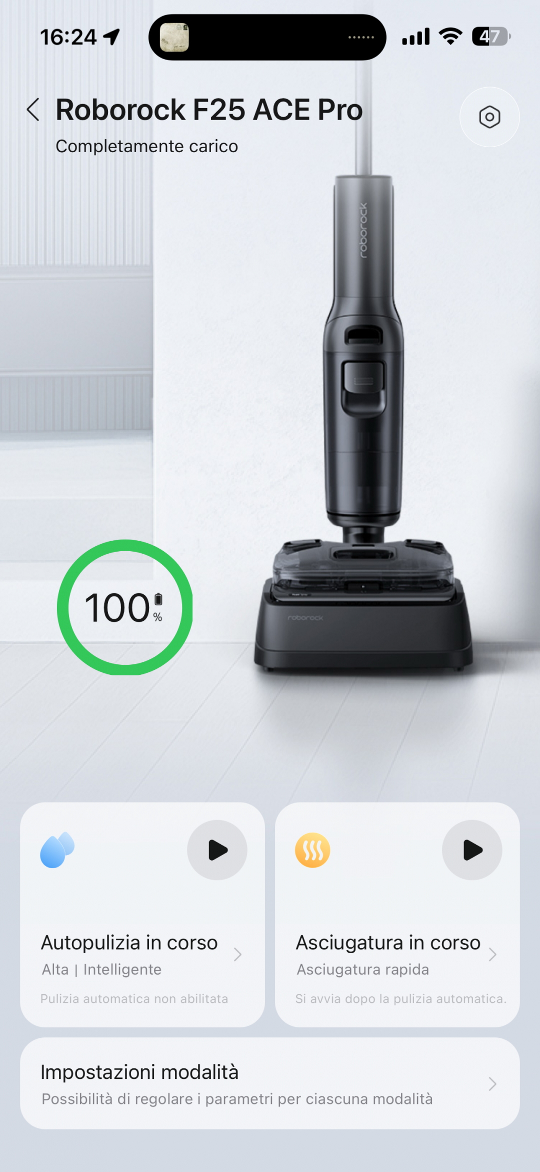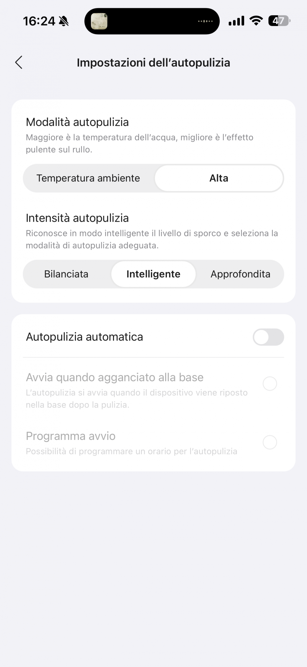 Dalla APP Roborock è possibile configurare tutte le funzionalità avanzate di F25 ACE Pro oltre che della base di ricarica: un esempio è la selezione della procedura di autopulizia del rullo una volta che l'aspirapolvere è stato posizionato sulla base di ricarica.